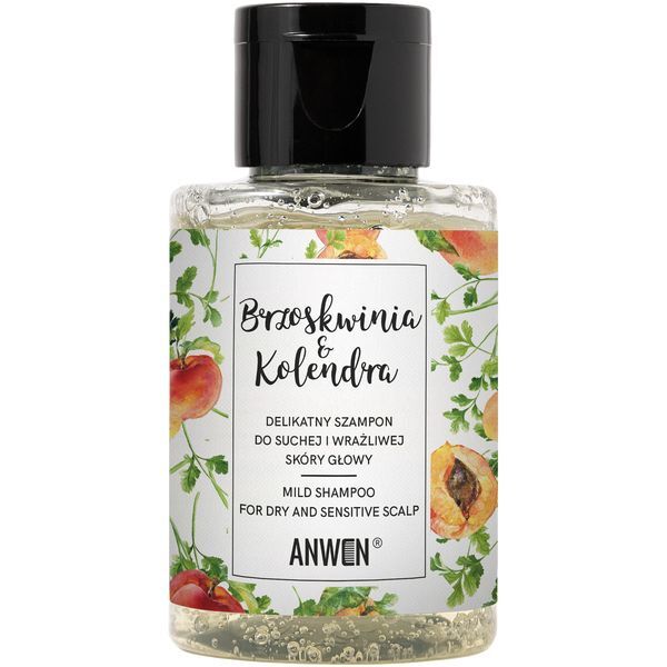Anwen Brzoskwinia i Kolendra to mini wersja delikatnego szamponu nawilżającego, którą możesz zabrać w podroż. Jest on przeznaczony do codziennego mycia skóry głowy, szczególnie tej skłonnej do przesuszenia i podrażnień. Formuła oparta na łagodnych detergentach skutecznie oczyszcza skórę głowy, nie naruszając jej naturalnej bariery ochronnej. Ekstrakty z shikakai, kolibła egipskiego i gipsówki wiechowatej, bogate w saponiny, delikatnie usuwają zanieczyszczenia, nie powodując podrażnień. Pochodna lukrecji ogranicza wydzielanie sebum, zmniejsza swędzenie i koi skórę głowy, natomiast witamina B3 działa przeciwzapalnie i poprawia ukrwienie, wspierając zdrowy wzrost włosów. Ekstrakty z siemienia lnianego, prawoślazu oraz betaina dogłębnie nawilżają i chronią skórę głowy.