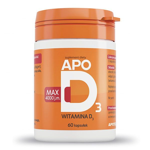 ApoD3 max to suplement diety zawierający witaminę D3, która wspomaga prawidłowe funkcjonowanie układu odpornościowego i mięśni, a także pomaga w utrzymaniu zdrowych kości i zębów.