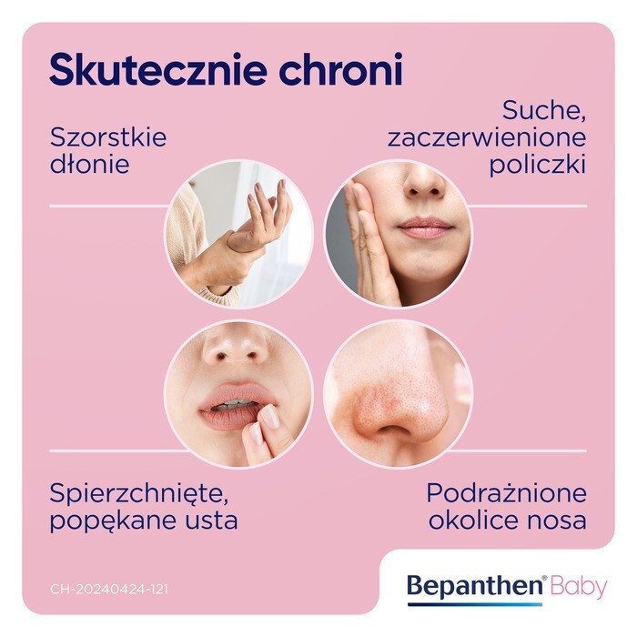 Specjalna formuła Bepanthen Baby chroni skórę niemowląt przed podrażnieniami i odparzeniem pieluszkowym od pierwszych dni życia. Dzięki przezroczystej i lekkiej konsystencji, Bepanthen Baby pielęgnuje skórę, pozwalając jej jednocześnie oddychać. Jest łatwy do nakładania i usuwania. Zawiera prowitaminę B5, która przyspiesza proces naturalnej regeneracji skóry i wzmacnia jej barierę ochronną. Dzięki zastosowaniu oczyszczonej lanoliny tworzy na pupce warstwę ochronną. Nie zawiera konserwantów, barwników, substancji zapachowych czy innych potencjalnie szkodliwych elementów. Dodatkowo wspiera regenerację brodawek sutkowych podrażnionych w trakcie karmienia. Wspomaga naturalne procesy regeneracyjne, odżywia oraz chroni skórę przed odparzeniami pieluszkowymi.