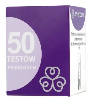 Evercare test paskowy jednorazowego użytku, stosowany w celu samodzielnego pomiaru stężenia glukozy we krwi. Do stosowania z glukometrem Evercare Genius. Test paskowy wskazany jest szczególnie do stosowania przez diabetyków i osób z podwyższonym poziomem cukru we krwi.