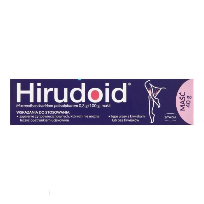 Wskazania: mukoplisacharydowy polisiarczan należy do grupy leków stosowanych miejscowo w przypadku: tępych urazów z krwiakami lub bez krwiaków; zapalenia żył powierzchownych, których nie można leczyć opatrunkiem uciskowym. Hirudoid maść może być również stosowany do fono- i jonoforezy. Przy jonoforezie maść jest podawana pod katodę.