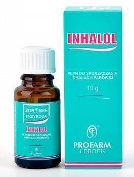 Wskazania: Inhalol jest preparatem stanowiącym mieszaninę olejków eterycznych o zbliżonym działaniu farmakologicznym. Preparat stosuje się pomocniczo, w postaci inhalacji wziewnej, w celu łagodzenia dolegliwości górnych dróg oddechowych takich jak katar i trudności w odkrztuszaniu gęstej wydzieliny.