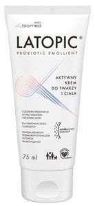 Krem do twarzy i ciała Latopic kompleksowo pielęgnuje, chroni i odżywia skórę atopową, suchą i skłonną do podrażnień. Dzięki bogatej formule skutecznie nawilża i natłuszcza oraz szybko łagodzi świąd. Krem do twarzy i ciała Latopic zawiera w swoim składzie metabolity Lactobacillus sp., które w naturalny sposób działają przeciwdrobnoustrojowo, pomagają zapobiegać rozwojowi Staphylococcus aureus (gronkowiec złocisty), który może zaostrzać objawy skórne u osób ze skórą atopową. Krem przynosi ulgę nadmiernie przesuszonej skórze oraz chroni ją przed działaniem niskich temperatur i wiatru. Przeznaczony jest do codziennej pielęgnacji skóry niemowląt, dzieci i osób dorosłych.